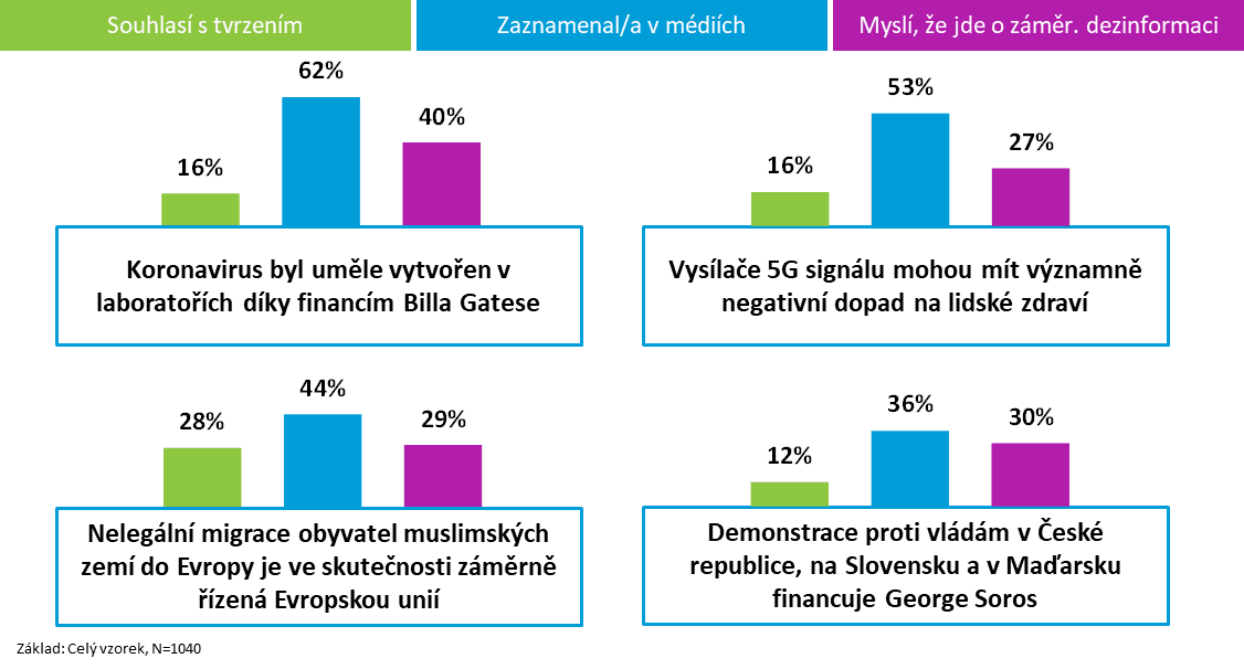 „Na základě úspěšnosti těchto 4 konspiračních příběhů lze odhadnout, že v české internetové veřejnosti existuje jádro přibližně 12–16 % lidí, kteří takovýmto dezinformacím a konspiracím věří. Mezi nimi převažují především příslušníci starší generace, lidé z menších a středních měst a lidé s nižšími příjmy,“ komentuje výsledky Josef Šlerka z NFNZ.